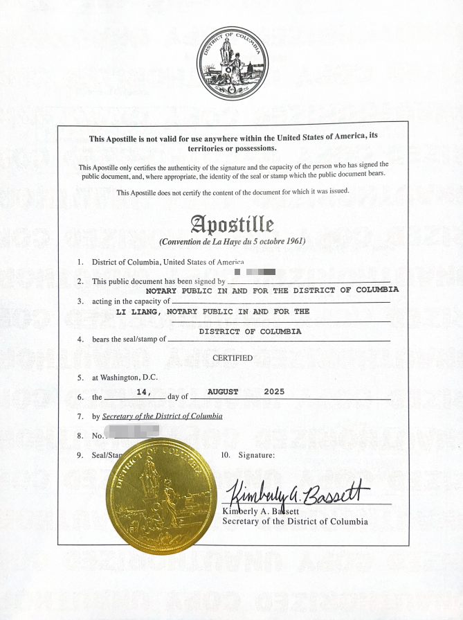 美国国务院签发,120+国家认可,可在国内公证处办理公证